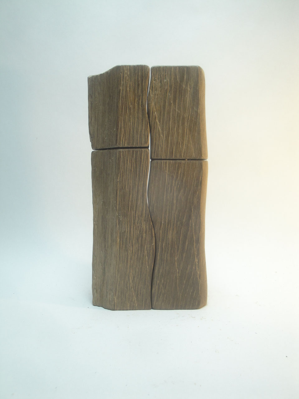 Ein rustikales Pfeffermühlen Salzmühlen Set aus einem alten Eichenbalken mit den schweizer Mahlwerken für Pfeffer und Salz. Teile der Mühlen weisen die alte Oberfläche des Balkens auf, der Rest ist geschliffen und insgesamt gebürstet. Die Mühle mit dem niedrigerem Trennschnitt ist die Salzmühle. Die Oberfläche ist bewusst nicht eingeölt. Höhe ca. 21 cm.