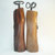 Eine Pfeffermühlen, Salzmühlen Set aus dem schönen Holz eines alten Birnbaumes mit dem Stahl und titanbeschichtetem Mahlwerk und handgeschmiedeter Kurbel. Radial aus dem Stamm gearbeitet mit Naturkante am Kopf. Die Oberfläche ist dreifach mit Hartöle geölt. Höhe ohne Kurbel ca. 18,8 cm, mit Kurbel ca. 23 cm